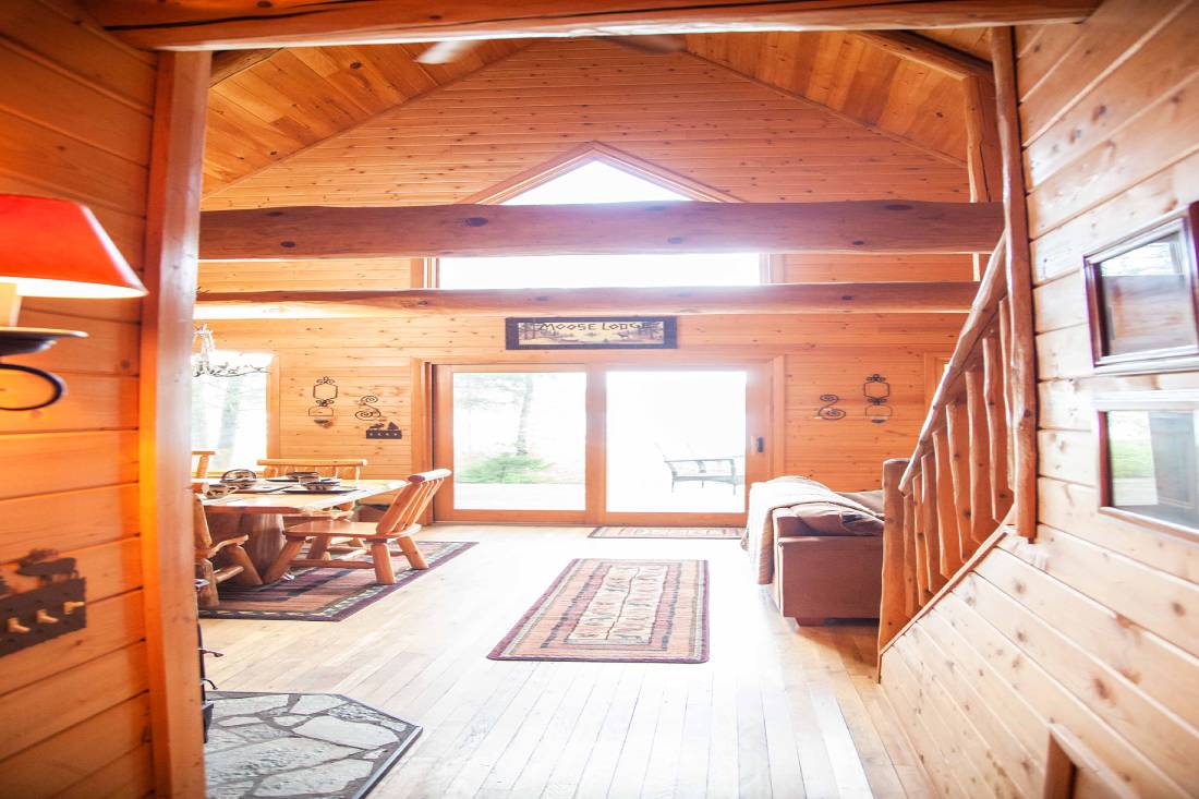 Moose Lodge on Cranberry Lake is what the U.P. is all about! A beautiful Log, Luxury Home on a private, inland lake, just 25 miles se of Munising/Pictured Rocks area. If you are looking for a private place for your family and friends to enjoy on vacation, no one will bother you here! Located on 28 acres, 3 bedrooms and 2 bathrooms, approximately 1400 square feet, the beauty of Moose Lodge will surely bring you back again. The full kitchen has stainless steel appliances (including a gas range) and a log dining table. The wood burning fireplace is a focal point, adorned with beautiful stone. On the main floor you will find the master bedroom with a queen size log bed, walk-in closet, dresser and flat screen TV; the bunkroom with a set of twin log bunks, dresser and a full length log style mirror. The bunkroom is perfect for the kids or two singles. There is a full bathroom and laundry on the main floor as well. Sliding glass doors look out at beautiful Cranberry Lake.