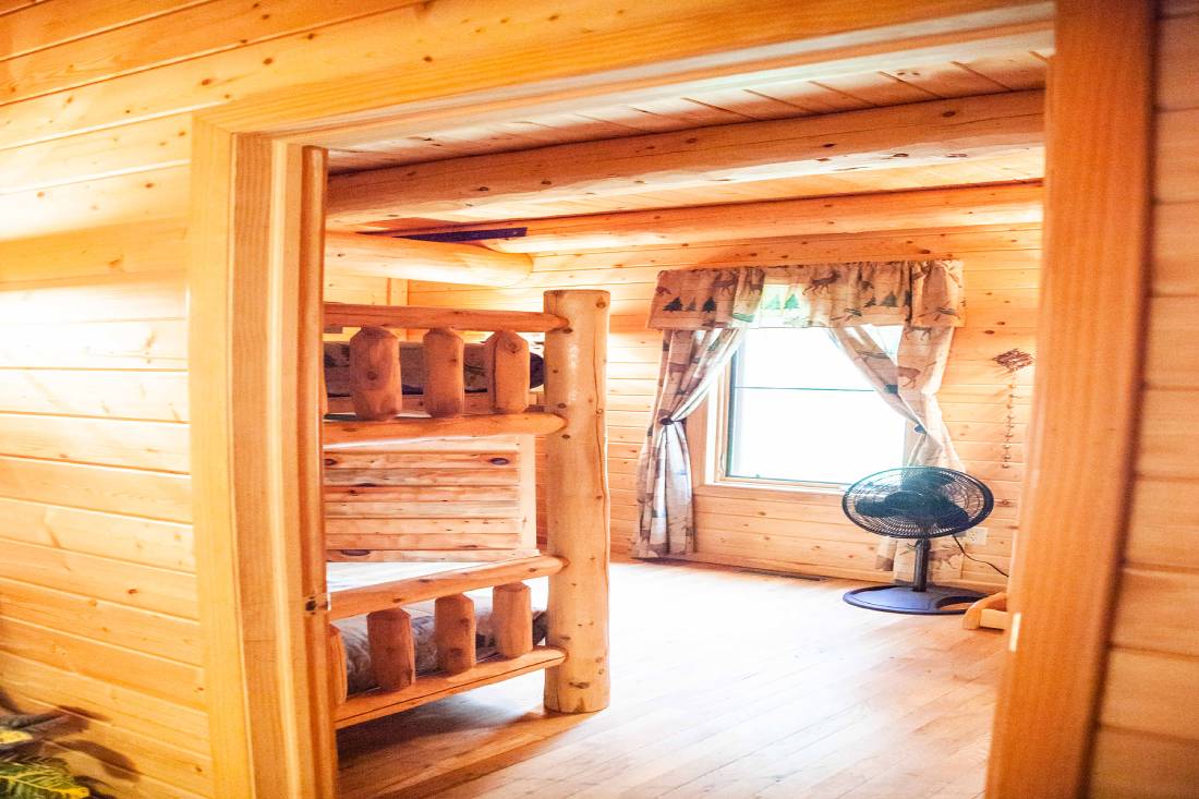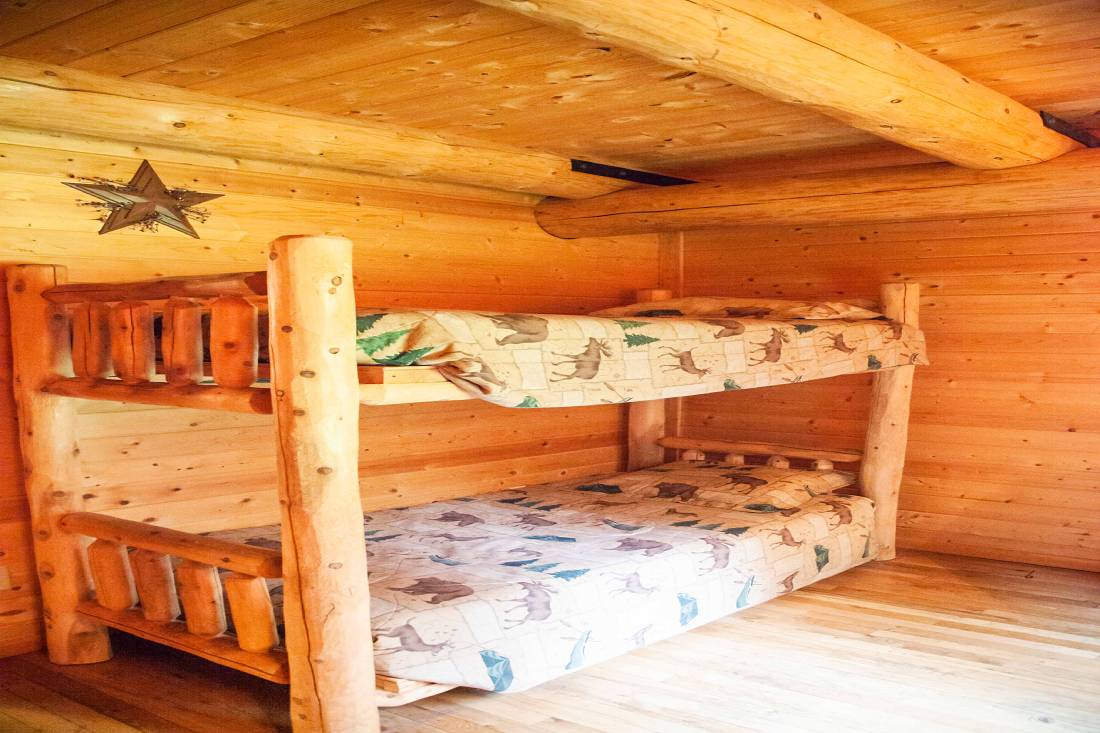3 bedrooms with log beds(2 on main floor, 1 in loft)
