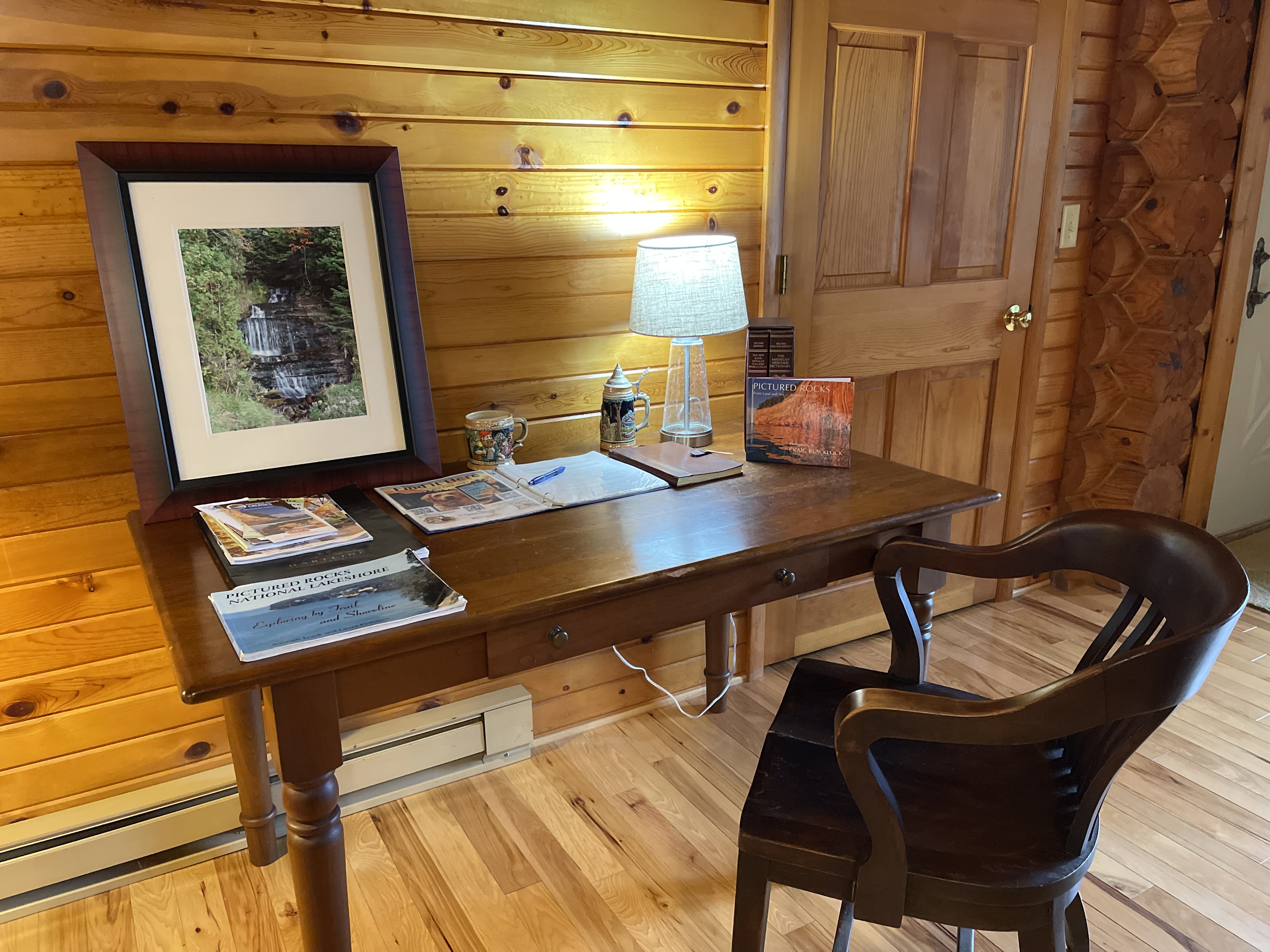 The log home itself is 2,000 square feet, cathedral ceiling; spacious living/kitchen/dining area; large flat screen TV with satellite. Two bedrooms have a king size bed each with premium sheets and comforters; side table with lamps; The master bath has a jetted tub; you can view Lake Superior from your rooms! The bunkroom is great for kids; twin size log beds, bedding included. Wireless internet access allows you to be on vacation, yet check in to make sure everything is running smoothly with other family or work. The full kitchen has all the comforts of cooking at home and plenty of seating at the dining table and island counter. Hardwood Hickory floors in the living area and carpet in the bedrooms.